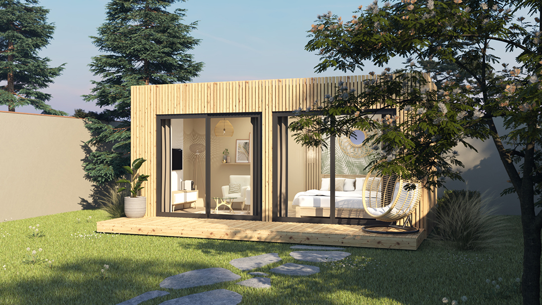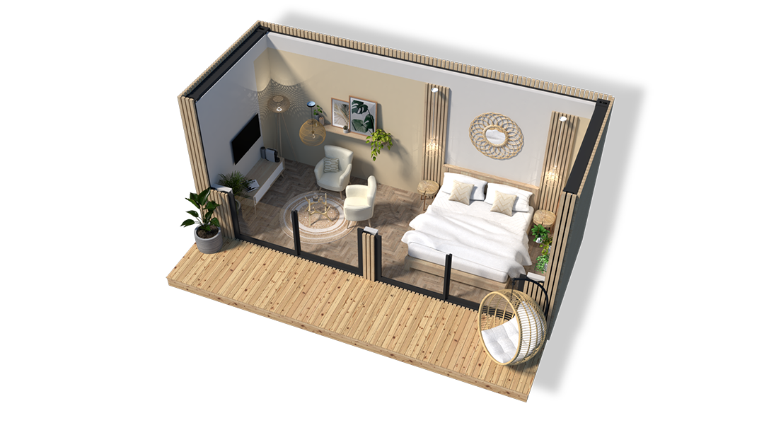 Compact, design et chaleureux, le modèle cosy vous permet de créer un véritable lieu de vie supplémentaire : chambre d’amis, Suite parentale ou accueil de personnes âgées etc.